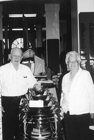 Claude Howard Stone Sr. and his wife Hazel were a true lighthouse family. Here they are shown, shortly before Mr. Stone's death at age 91, with the 4th order lens from Ship Island Lighthouse that they faithfully tended for over 20 years. The lens is on display at the Mariners and Seafood Industry Museum in Biloxi, Mississippi. Photograph courtesy of the Stone Family Collection Back to the edition of: May 2000