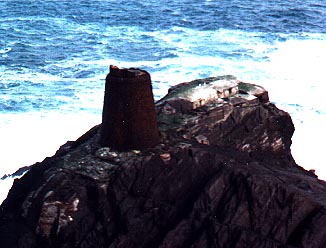 Shown here in a photograph by Kathleen Finnegan is all that remains of Ireland's 1864 Calf Rock Lighthouse. Back to the edition of: March 1997