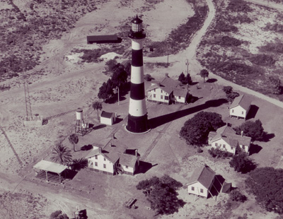 This aerial view shows how the Cape Canaveral Light Station appeared in 1951. However, 16 years later, with all the keepers removed, the government destroyed the keeper’s homes and other buildings. (U.S. Coast Guard photo, Lighthouse Digest archives.) Back to the edition of: Sep/Oct 2015