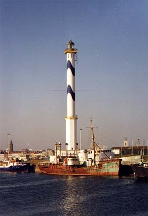 Oostende Light is more than twice as tall as any other lighthouse in Belgium. The blue wavy stripes serve as a daytime aid to navigation. Back to the edition of: January 1998