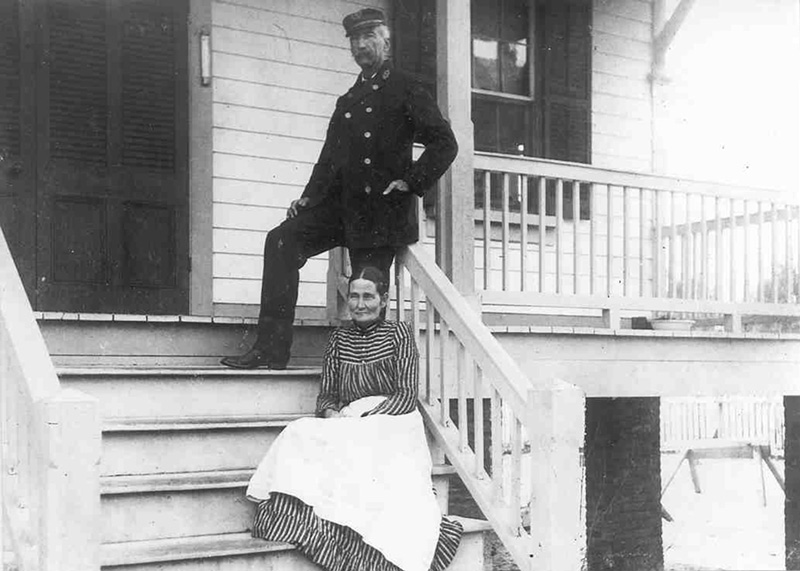 Bloody Point Keeper Robert Augustus Sisson and his wife Martha, at the western entrance to the lighthouse. Back to the edition of: September 2001