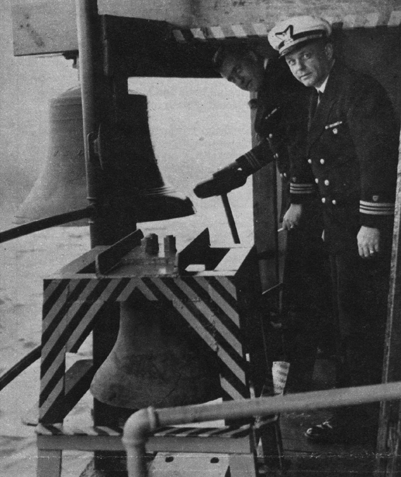 Coast Guard personnel check Duxbury Pier Light’s fog bells during an inspection in 1964. Back to the edition of: September 2001