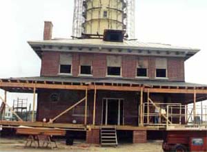 The nearly completed lighthouse keepers house at Absecon Lighthouse as it appeared on July 2, 1998, just a few days before the fire destroyed the structure. Back to the edition of: August 1998