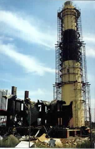 In the aftermath of the devastating fire, the tower of New Jersey's Absecon Lighthouse stands tall over the ruins of the keepers house after the July 6th fire. Back to the edition of: August 1998