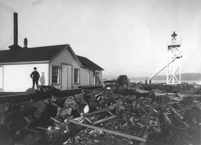 The fog signal house and wooden light tower at Point Robinson in the 1890s. Courtesy of Island Landmarks. Back to the edition of: September 2003