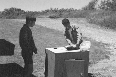 Steve cleans the fish while Jim watches. Back to the edition of: December 2003