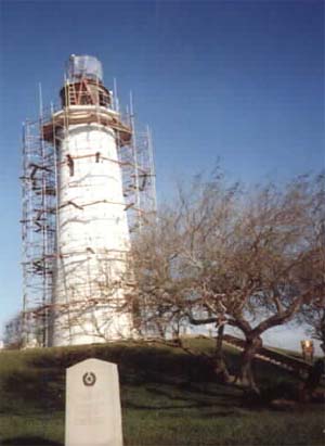 Scaffolding was put up around the tower in preparation for the restoration of the exterior of the Port Isabel Lighthouse. Back to the edition of: October 1998