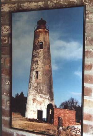 Just inside the newly renovated Sapelo Island Lighthouse, is a "before" photo of the lighthouse, to remind visitors of the immense extent of the renovation. Back to the edition of: November 1998