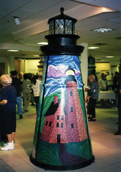 The mosaic-like image on this lighthouse depicts New York's Charlotte-Genesee Lighthouse, and there's a working light and real glass in the lantern. Back to the edition of: July 2004