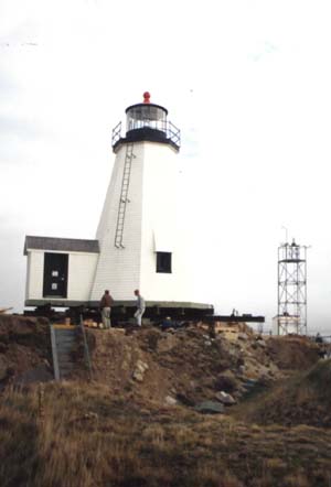 Plymouth Light being prepared for its move to a new location from the eroding cliff and the approaching ocean. Back to the edition of: February 1999