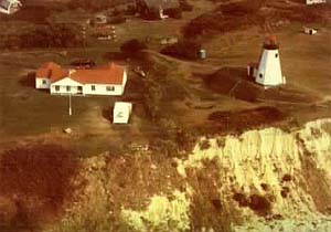 This aerial shot of Plymouth Light shows just how close the eroding cliff was to the lighthouse prior to its move this past December. Back to the edition of: February 1999