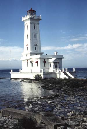 Point Abino Lighthouse on Lake Erie, Ontario, Canada is located about 40 miles west of Buffalo, New York. The lighthouse, in need of immediate repairs, has been declared "Off Limits" to outsiders by the local homeowners association. Back to the edition of: February 1999