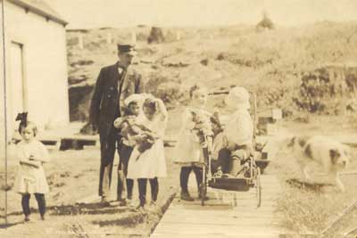 Lighthouse keeper Charles L. Knight with children at Hendricks Head Light. Shep, the 85 pound mixed breed lighthouse dog is shown at the right of the children. Shep was awarded a bronze medal. Photo courtesy Don & Deb Malonson Back to the edition of: April 2005
