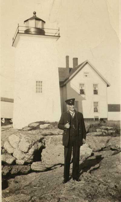 Capt. Charles L. Knight at Maine’s Hendricks Head Lighthouse where he served as keeper from 1930-1933. He also served as keeper at Maine’s Squirrel Point Light and Goose Rocks Light. When he retired from the U.S. Lighthouse Service his retirement pay was $97.71 per month. Photo courtesy Don & Deb Malonson. Back to the edition of: April 2005