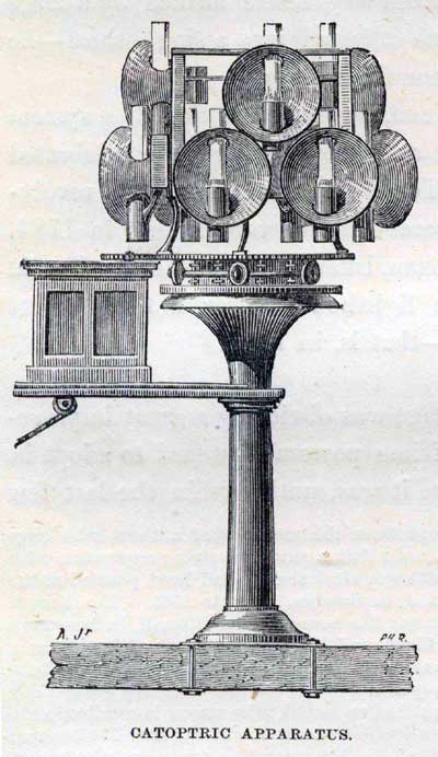 A 19th century drawing of a catoptric array with a clockwork turning mechanism. Courtesy of Don Johnson. Back to the edition of: May 2005