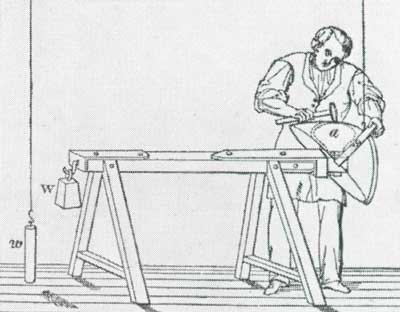 A Scottish metalsmith creating a parabolic reflector. From the book, Lighthouses and Lightships, A Descriptive And Historical Account Of Their Mode Of Construction And Organization, by W. H. Davenport Adams, published in 1871. Back to the edition of: May 2005
