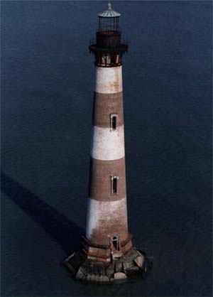 The abandoned Morris Island Lighthouse in Charleston Harbor, SC, has been purchased by a non-profit group that hopes to save the lighthouse. The lighthouse has also been called the "Folly Beach Lighthouse" because of its closeness to Folly Beach, SC., and is more commonly called the "Old Charleston Lighthouse." Back to the edition of: April 1999