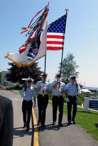 The Honor Guard from the Rockland Coast Guard Station opened the ceremony for the Grand Opening of Phase Two of the new Maine Lighthouse Museum honoring Ken Black. Back to the edition of: August 2006