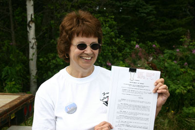 Terry Greene proudly shows off the deed to the island and the lighthouse. Back to the edition of: November 2006
