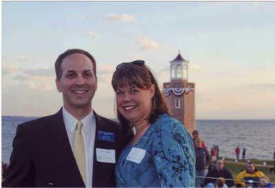 Steven & Kristen Gulyas who were among the earliest founders of the Avery Point Lighthouse Society pose for a photo before the relighting of the Avery Point Lighthouse. Back to the edition of: December 2006