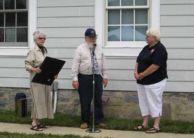 Ron Pesha introduces the artist of the special postal cancellation to Dot Black, widow of Ken Black, who was presented with the original artwork used to design the postal cancellation. Back to the edition of: September 2007