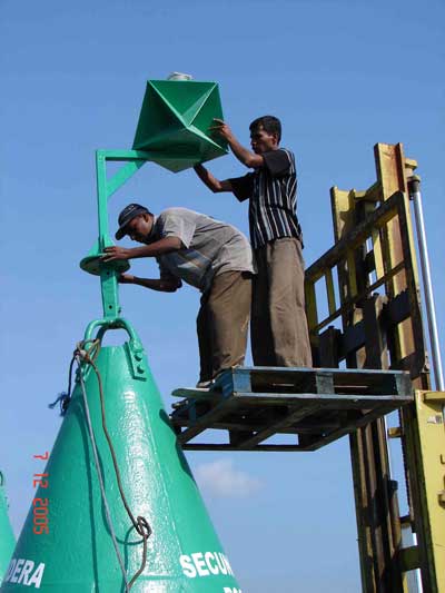 Sri Lanka Ports Authority personnel prepare a buoy for deployment in July 2005. Courtesy of Trinity House. Back to the edition of: October 2007
