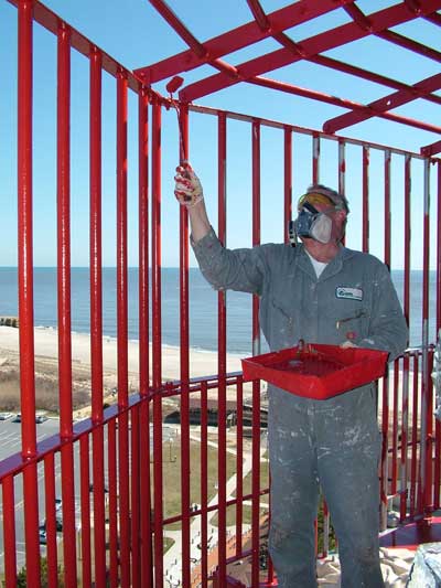 Scott McTigue of Restoration Painters, LLC refinishes the outside gallery grill of New Jersey's Cape May Lighthouse. Photograph courtesy of Margo Harvey of the Mid-Atlantic Center for the Arts. Back to the edition of: June 2008