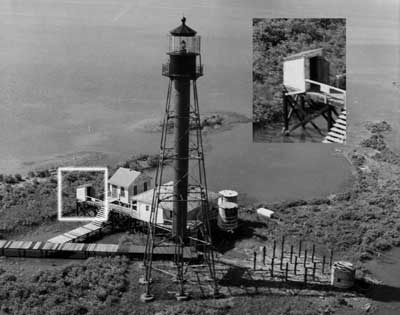 The walk to the ‘little house’ was not too far for the keepers at the 1896 Chandeleur Lighthouse in the Gulf of Mexico near New Orleans. The structure, located in the Breton Reef National Wildlife Refuge was reported destroyed in Hurricane Katrina. Photograph courtesy Nautical Research Centre. Back to the edition of: November 2008