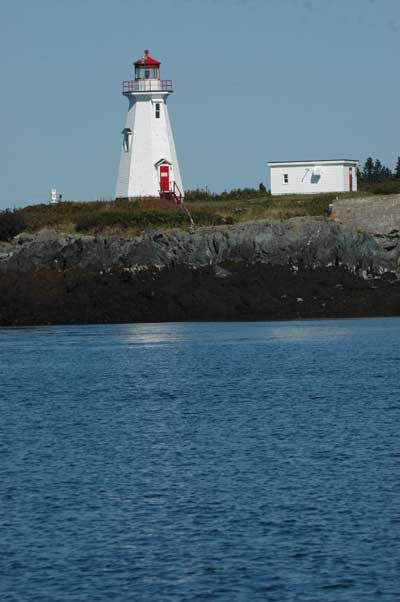 Green’s Point Lighthouse, also known as the L’Etete Passage Lighthouse on Green’s Point in L’Etete, NB, Canada as seen from the deck of the Wanderbird. Originally a fog signal station established in 1879, the lighthouse was built in 1903 and deactivated in 1999. The keeper’s house is now an interpretive center and museum. Back to the edition of: December 2008