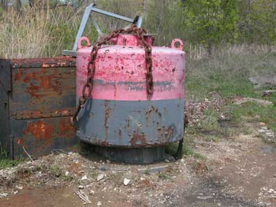 Before being repainted the buoys had to be water blasted to remove the flaking paint and rust. Back to the edition of: April 2009