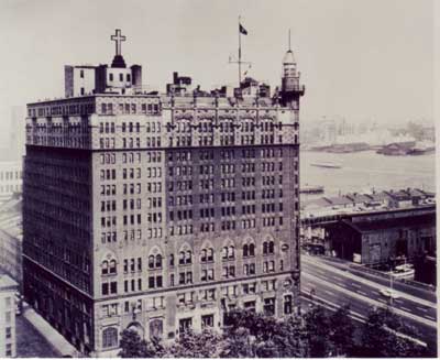 The Titanic Memorial Lighthouse high atop the Seaman's Institute in New York City. The building no longer stands, having been demolished in 1963 to make way for a parking lot. Back to the edition of: April 2009