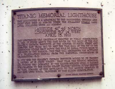 The plaque now on the Titanic Memorial Lighthouse in New York City. Back to the edition of: April 2009