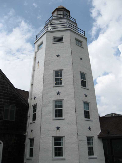 Tower Height: 60 Height of Focal Plane: 65 Description of Tower: Octagonal brick tower (replica of Montauk Point Lighthouse)