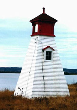 Notes: In 2005, ownership of this lighthouse was transfered to the village of Cambridge-Narrows. Tower Height: 27 Height of Focal Plane: 30 Characteristic and Range: White fixed light; range 3 nautical miles (1938). Description of Tower: White, square pyramidal wooden tower with red lantern and red trim.