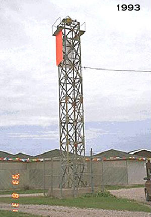 Earlier Towers? 1870: White, square wooden tower; 54 feet tall. 1881: White, square, wooden tower; 54 feet tall; dwelling nearby. 1921: Red, square skeleton tower with a white slatwork daymark and enclosed upper portion, and a red iron lantern; 66 feet tall. Date Established: 1870 Date Present Tower Built: c. 1970