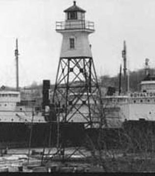 Tower Height: 50 Height of Focal Plane: 65 Characteristic and Range: Fixed red, range 9 miles. Description of Tower: White, square pyramidal skeleton tower with an enclosed upper portion and an orange vertical stripe.