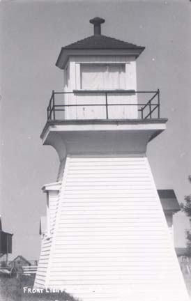 Notes: The rear light was shown from a red, square, steel skeleton tower with a white enclosed watchroom and wooden slatwork daymark. Height of Focal Plane: 41 Characteristic and Range: Fixed white; range 7 miles. Description of Tower: White, square wooden tower.