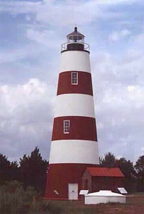In 2011, archaelogists found the foundation of the keeper's house that had been destroyed in an 1898 hurricane. Tower Height: 70 Height of Focal Plane: 79 Description of Tower: Conical brick tower with six red and white bands, with black cast iron lantern.