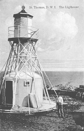 Notes: This lighthouse was established by the Danish government. Characteristic and Range: White flash every 15 seconds, visible for 9 nautical miles (1920). Description of Tower: 1844: Tower, focal plane height of 95 feet; 1878: Circular red tower, focal plane height of 182 feet; 1912: White circular tower with a green lantern, focal plane height of 121 feet.