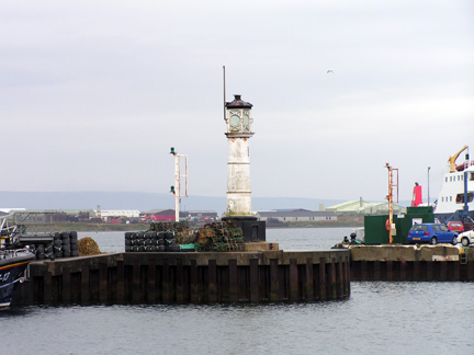 Notes: This lighthouse was originally situated at the head of the main pier in Kirkwall. It was decommissioned and moved to its present site on an extension of the main pier in 1994. The new Kirkwall West Pier Light is a simple post light (see related photos). Description of Tower: White, conical cast iron tower.