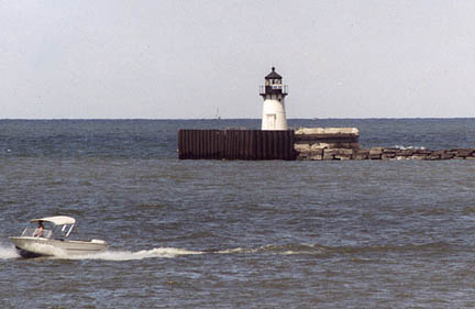 Notes: The lighthouse installed here in 1884 was originally built as the Rochester (Genesee) West Pier Light, NY, in 1881. Tower Height: 25 Height of Focal Plane: 31 Characteristic and Range: Green light, 3 seconds on, 3 seconds off; range 7 nautical miles. Description of Tower: White, conical cast-iron tower.