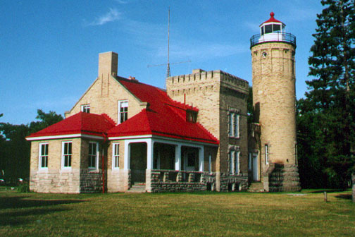 Other Buildings? 1892 two-story brick keeper's house, 1907 brick fog signal building. Date Established: 1892 Date Present Tower Built: 1892 Date Deactivated: 1957 Optics: 1892: Fourth order Fresnel lens. Current Use: Museum. Open To Public? Grounds and museum only. Museum? The lighthouse is open to the public from mid-May to Columbus Day. There is also a gift shop. Directions: This lighthouse is located at the foot of the Mackinac Bridge in Mackinaw City. Take Exit 336 from I-75. Follow Nicolet Avenue through Mackinaw City, then turn right on Huron Avenue and follow to the lighthouse. There is a picnic area around the lighthouse. It can also be seen from lighthouse cruises offered by Shepler's Mackinac Island Ferry Service. See www.sheplerswww.com/group/light.htm or call 231-436-5023. It can also be seen from tours offered by Mackinac Seaplane Tours -- see www.mackinacseaplanes.com or call 906-632-9746. Listed on the